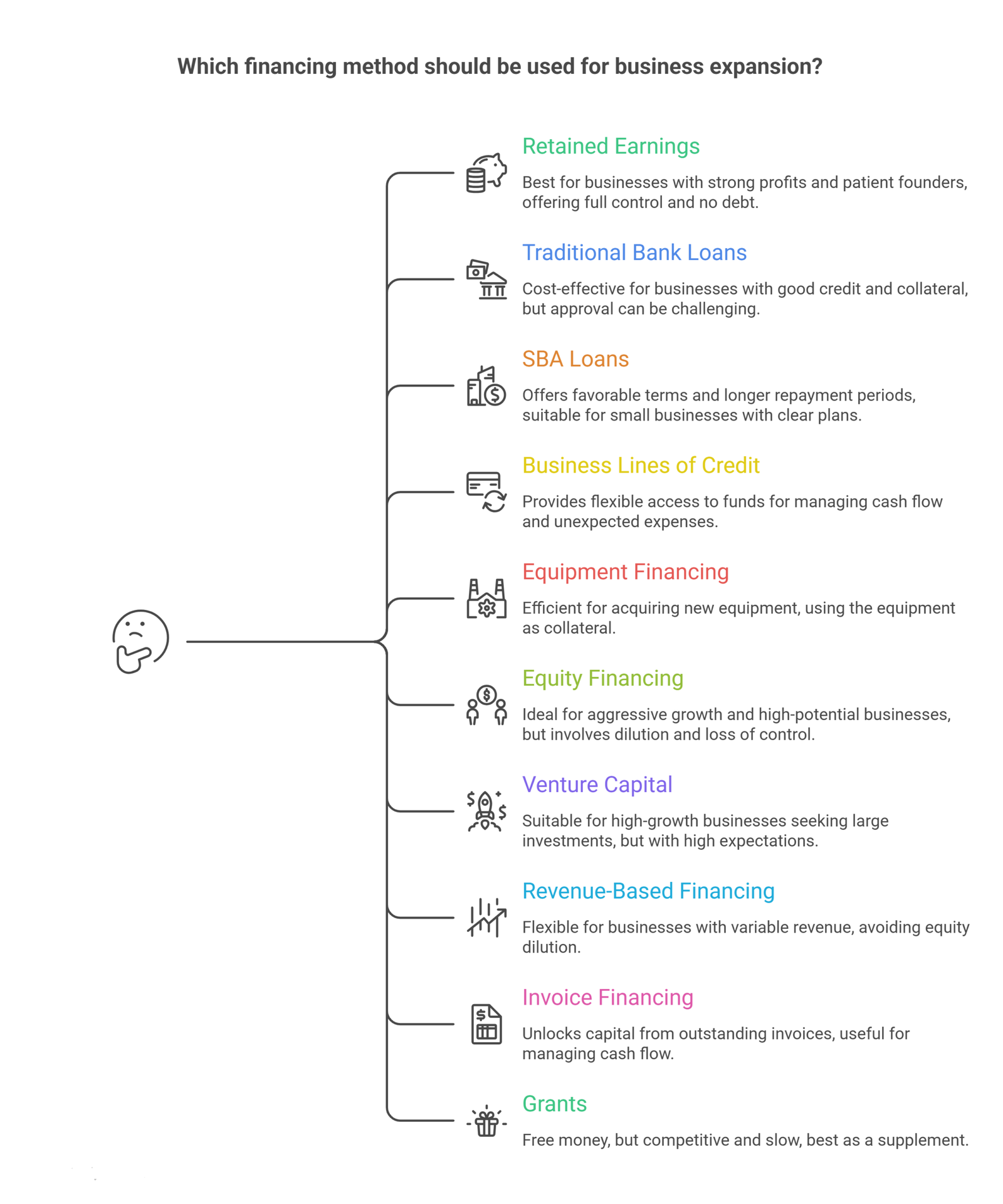 Matching your financing to your expansion type is essential. Here is a simple way to think about it: