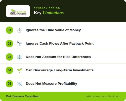 Does not measure profitability: A short payback period does not guarantee a profitable investment. Always pair payback analysis with NPV, internal rate of return, or discounted cash flow analysis.