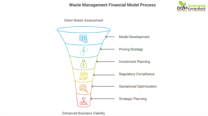 Oak Business Consultants creates comprehensive, investor-ready waste management financial models. Gain clarity on costs, pricing, revenue, and profitability to scale your waste management business with confidence. Contact us today to learn how we can help your waste management business enhance financial performance, operational efficiency, and long-term sustainability.