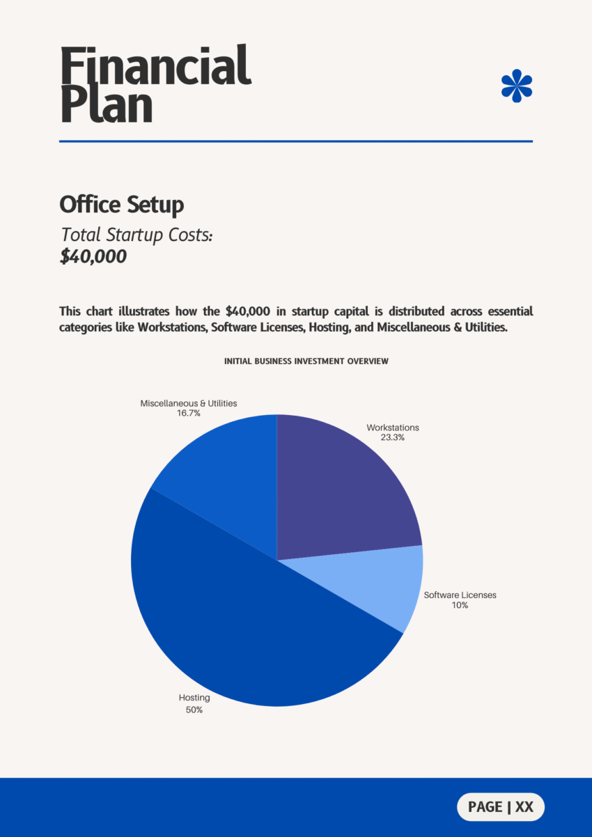 - Financial Plan: Features startup costs, funding requests, capital expenditure budgets, financial projections and investor return analysis.